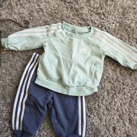 Treningsdress fra Adidas og svart body fra Lindex. Pent brukt. Perfekt til f.eks. mor-barn-trening eller kosedager hjemme. Myke og gode. Ingen anmerkninger.