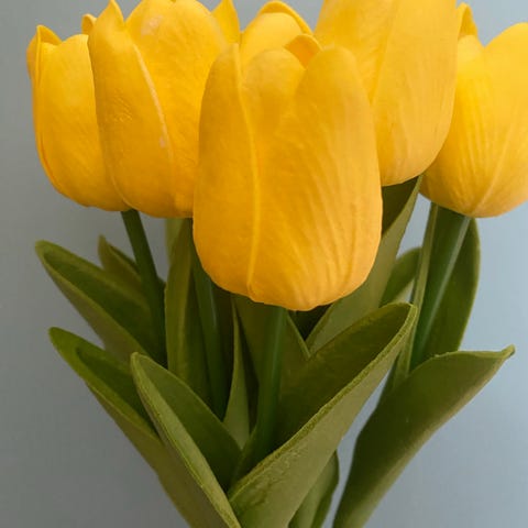 Unik tulipan i heltre, perfekt som dekorasjon eller gave. Denne skulpturelle blomsten står stødig i en blå potte og kombinerer stramme former med friske farger. Den gir umiddelbart karakter til en hylle, barnerom, eller et moderne interiør.