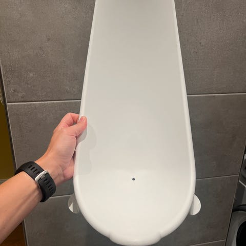 Badestøtten etterligner støtten til en trygg og stabil arm, designet for å passe barnets naturlige kroppsform. Kan brukes til nyfødte og opptil åtte måneders alder.