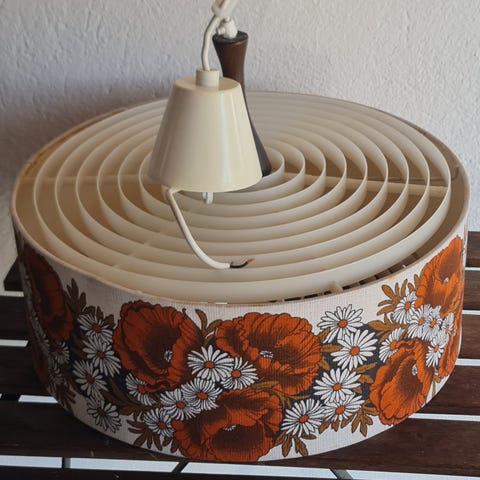 Vakre, store lampeskjermer, håndflettet av rattan. Helt nye, aldri tatt i bruk. Pendel og lyspære må kjøpes separat.
