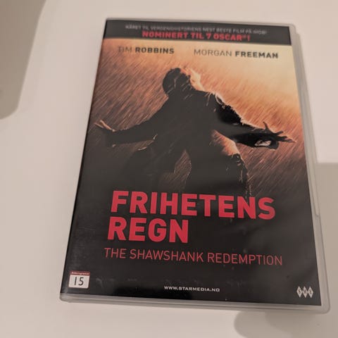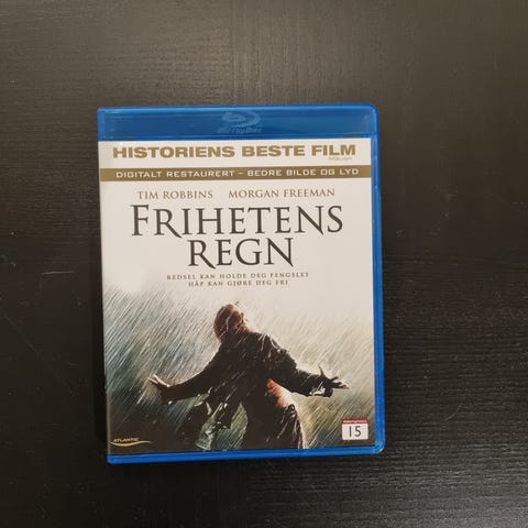 Frihetens Regn Blu-ray Film. Denne utgaven er i Blu-ray-format og inkluderer filmen med Tim Robbins og Morgan Freeman. Filmen er kjent for sin gripende historie og sterke skuespillerprestasjoner. Egnet for de som ønsker en kvalitetsfilmopplevelse hjemme.