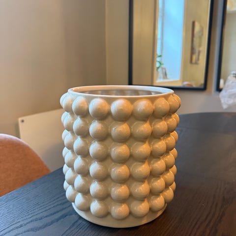 Nydelig vest-tysk keramikkpotte med sløyfe-dekor. Kan sendes for 69,- for PostNord