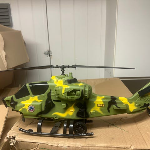 Nytt byggesett for helikopter. Esken er kun åpnet for å se at alt er komplett