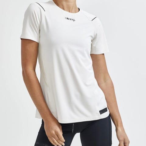 Women's Pro Hypervent Tee 2 fra Craft er en tynn og lett trenings t-skjorte til dame, passer perfekt til løping og intense treningsøkter på varme dager. T-skjorten har et tynt og funksjonelt materiale av trikot med effektiv fukttransport, mens perforeringer i ryggen gir ekstra ventilasjon og kjøling under intense treningsøkter. Teipet og lett søm gir ekstra komfort.