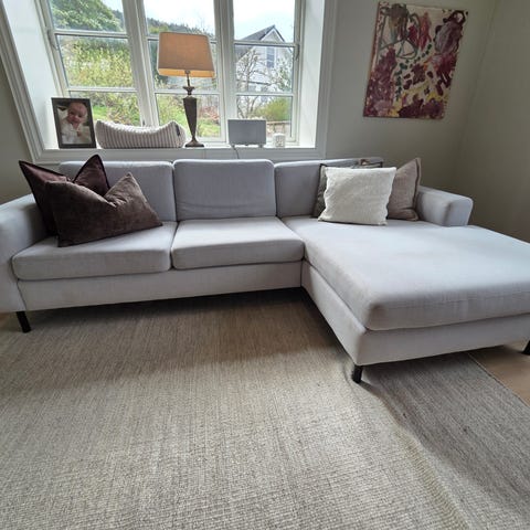 Brukt kun få år, men brukt mest en lenestol. flekker kan vaskes med såpe og vann. Og fjernes lett og bort. Veldig passet på sofa. I god stand. Ny pris var over 20000 kr.
