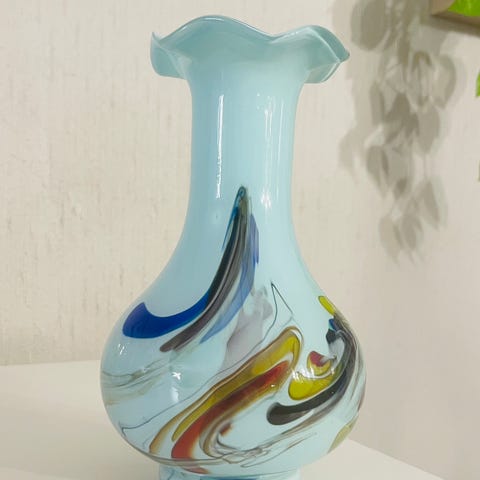 Søkeord: glassvase kunstglass kunstglassvase blomstervase pyntevase glasspynt retro.