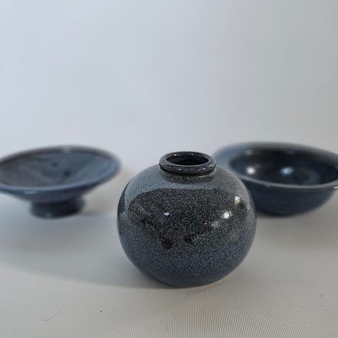 Kunstglass vase og skål