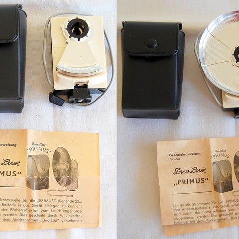 Vintage Italiansk Microdue Ferranta 1 Sammenleggbar Vifteformet Blits,etui