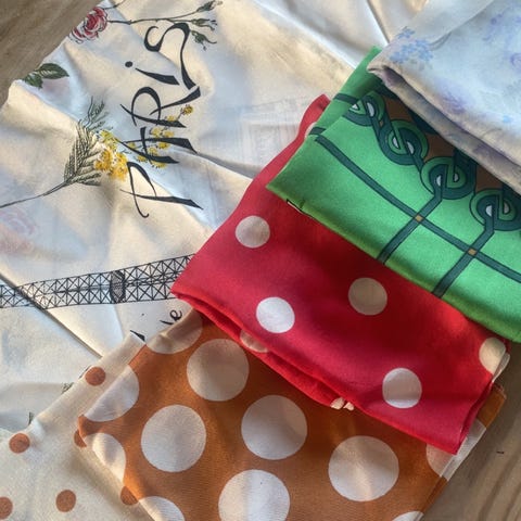 2. SOLGT Blått/ rosa / hvitt / grønt 76 x 76 cm. Made in Italy. 100% Polyester