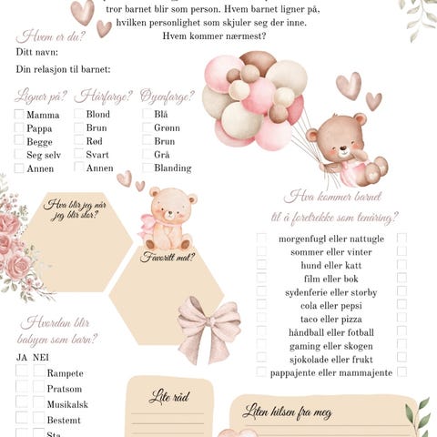 Dåpsquiz | Spådomsark til dåp og navnefest | Selskapslek for anledningen