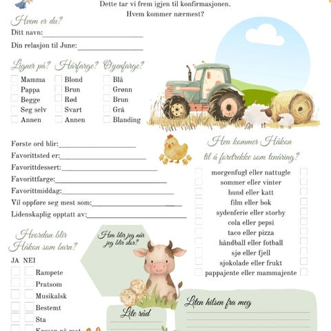 Gjør dåpen eller navnefesten ekstra minnerik med en morsom og personlig fremtidsquiz!