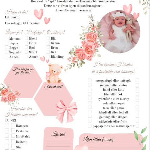 🎉 Redigerbar Gjettelek til Dåp eller Navnefest – med eller uten bilde!