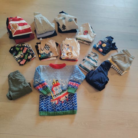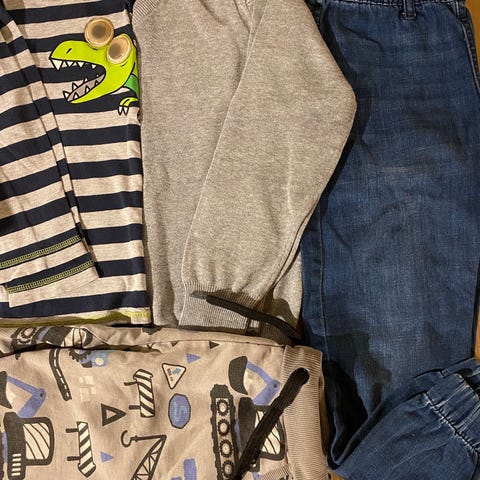 Dinosaur genser med paljetter som endrer farge størrelse 122/128 H&M, LC Waikki boys lysblå finskjorte med påsydd sommerfugl. Nystrøket.