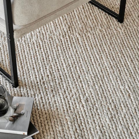 i grå og hvit. Vendbart vevd plastteppe perfekt til gulvområder som trenger litt beskyttelse.
