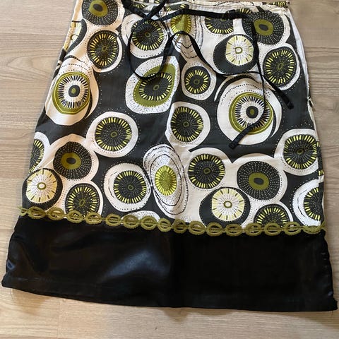 Kult skjørt med retro mønster! Akantusmønster i en mørk blåturkis farge. Trang, rett modell. Merke Days Like This. Str M, bredde i livet 40 cm, lengde 63 cm.