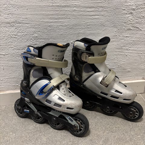 Hjul til å feste på vanlige sko, ubrukte, hele og fine. Morsomt og utviklende å holde på med. For barn i barnehagealder eller lav skostørrelse.