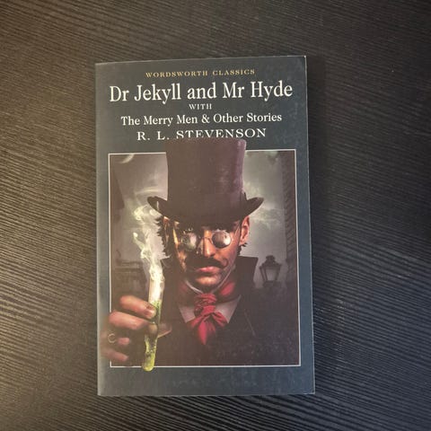 Selger Dr. Jekyll and Mr. Hyde av R. L. Stevenson (engelsk) for 45 kroner. Kjøper betaler selv frakt.