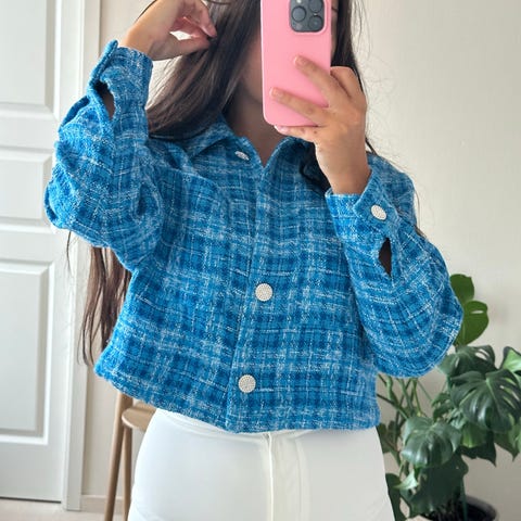Helt ubrukt skjorte-jakke i merket creme. Fremstår noe stor i størrelsen (tilsvarende 38).