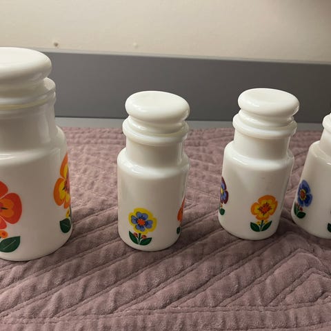 5 stk opalin krukker til krydder.
