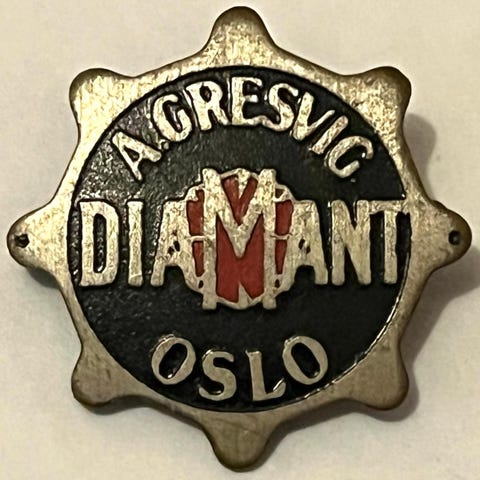 Nålemerke med teksten DBS og Øglænd