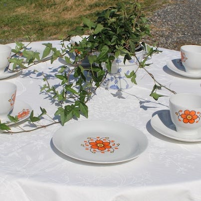 Selger deler til nydelig kaffeservisefra Porsgrund. Nora G design. Mønsteret er nok trykk, men utrolig vakkert.