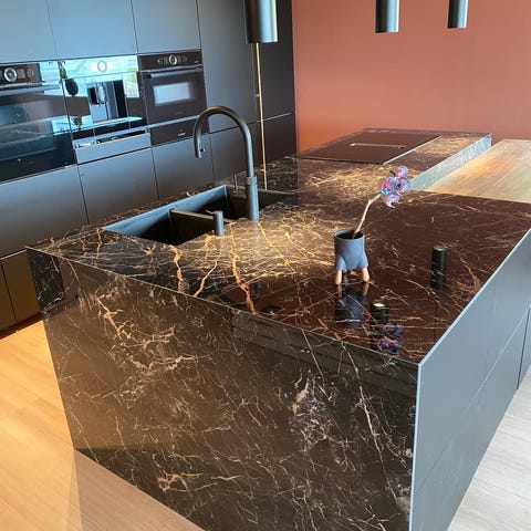 Et stilrent og moderne uttrykk med en myk, mattsvart finish. Det er det du får med KUNGSBACKA dører og skuffefronter, som er laget med resirkulerte råstoffer og derfor gir nytt liv til kasserte materialer. Frontene har en 45 graders skråkant oppe og nede som fremhever de horisontale linjene i kjøkkenet ditt på en elegant måte.