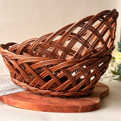 🌾 Vintage, landlig flettet kurv til brød og bakst