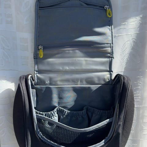 Samsonite toalettmappe selges for kr 100,-. Mål: 29 cm lang, 20 cm høy