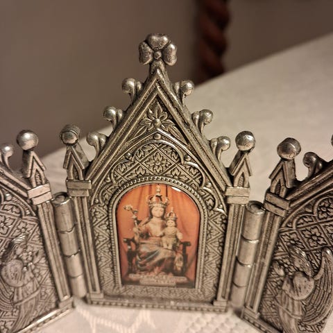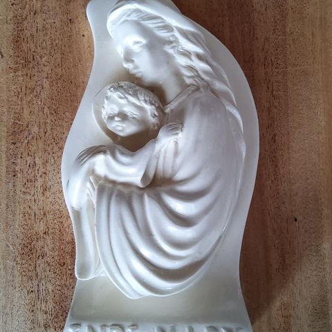 Fin vintage pieta figur i alabaster og marmor sokkel