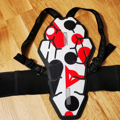 Dette er jo en veldig solid, men rimelig brynje, med hardplastrygg- og brystbeskyttelse. Skuldrene er laget av et mykt materiale for mer ergonomisk passform. Justerbare elastiske fester på siden