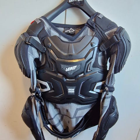 Dette er en enkel bryst- og ryggbrynje, egentlig til motocross, men min sønn kjøpte den til MTD downhill. Ble brukt bare en gang fordi passformen ble feil for ham.