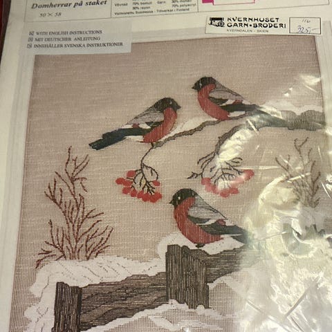 Påtegnet Broderisett med duk, brikke og løper.