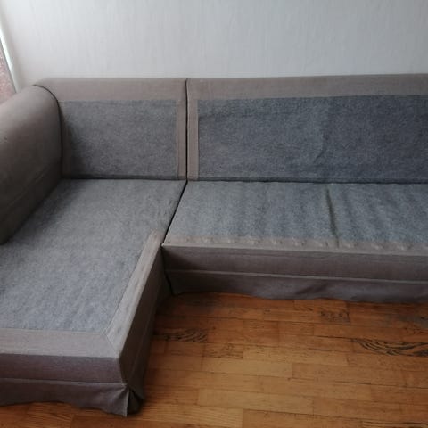 2-seters sofa, med sjeselong/grå