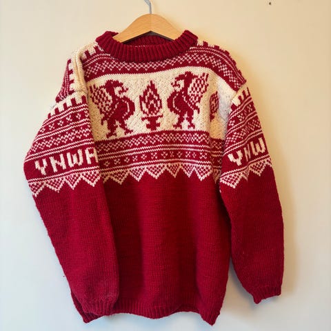 Strikket I Viking sportsragg. Str 6 år romslig I str. Fin til en liten supporter.