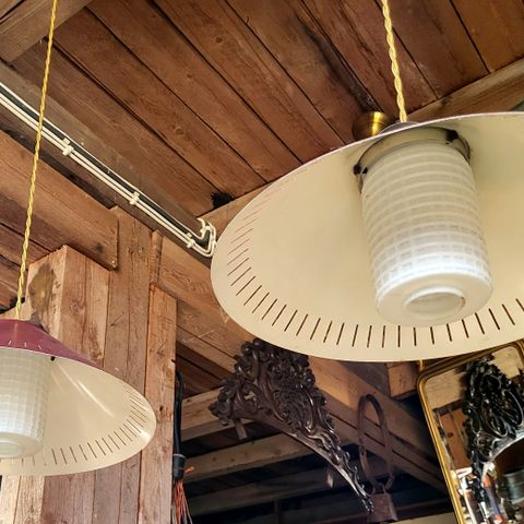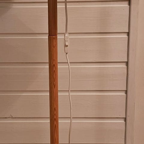 133,5 cm høy. Kan skrus fra hverandre. Fungerer. Skiftet kontakt. Noen små merker på toppen av lampa.