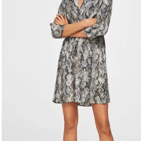 Slangemønstret skjortekjole fra Mango str. S