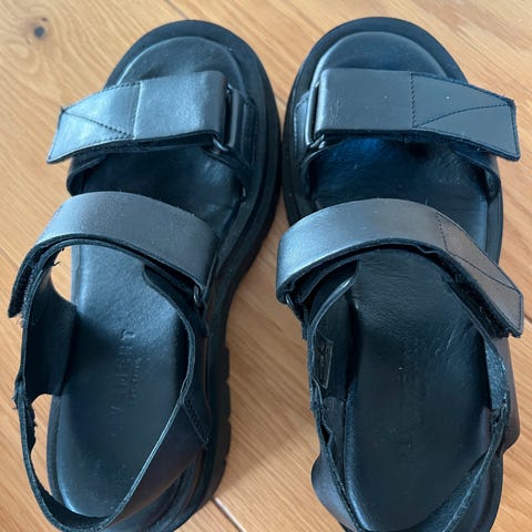 Maru Pavement-sandaler i sort skinn. Brukt én gang, litt store til meg. Kjempegode sommersandaler. Sendes uten esken.