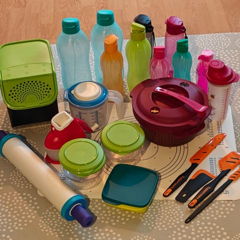 Dressingsett og saftkanne selges samlet. Kan brukes til syltetøy, dressing agurker mm. Kannen er på 1 liter og kan brukes til saft og vann for eksempel.