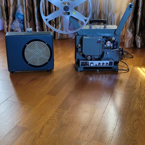 Klippebord for 8 mm film. Filmen vises på den lille skjermen