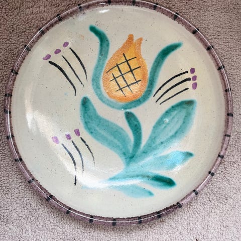Keramikk veggfat med landskapsmotiv brun
