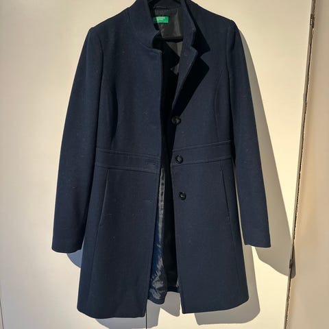 Søt vår og sommerkåpe fra Benetton i str. XS. Fin splitt i ryggen og skjulte lommer foran. Nyvasket og klar til å få en ny eier:)
