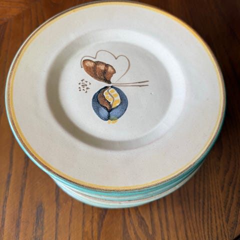 3 stk. krukker, en merket Gann 4, pen og glatt i glasuren. Den andre er merket Eios 3 (utydelig), godt slitt i glasuren. Begge har dessverre litt sprekkantydning, men i utstillingsøyemed er det ikke veldig synlig. Den tredje er med "håndtak", merket Eles. Uten sprekker.
