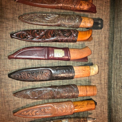 Design og slirer laget av Kniv- og lærmaker Knut Myhra (MyhrasCrafting)