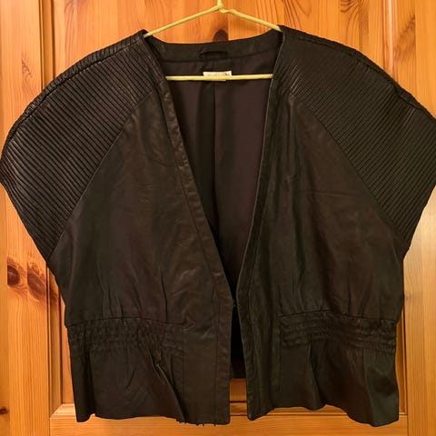 Lengde fra nakke og ned 82 cm. Jakken har split i sidene.