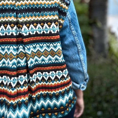 Flott håndbrodert åkle på ryggen. Fine detaljer på innsiden.