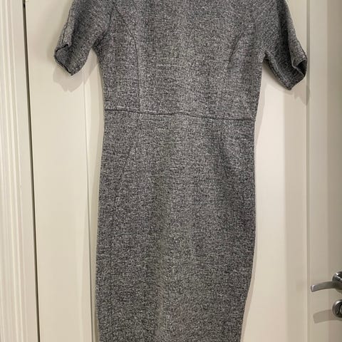 Pepitarutet, kortermet kjole fra Zara i str. L. Lite brukt. Liten splitt bak og glidelås i ryggen. Stoffet er ganske tykt, men elastisk. Lengde ca. 102 cm, omkrets midje ca. 79 cm. Lengde splitt ca. 17 cm. Lenge erm ca. 14 cm. 64% polyester, 32% viskose, 4% elastan.