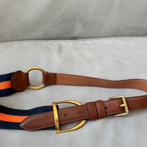 Fint stripete belte til bukse eller shorts. Lengde 95 cm.