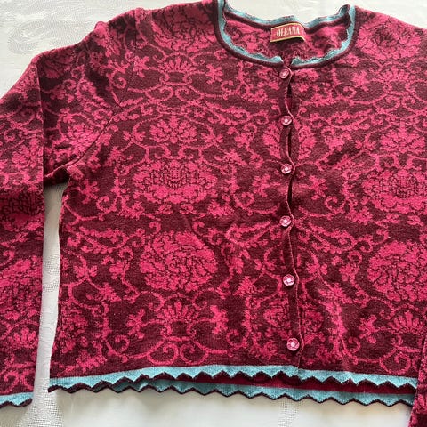 Ubrukt cardigan fra Oleana, str. S, 25 %silke, 75%merino ull.