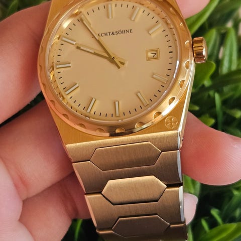 Jättesnygg klocka, men med ett väldigt litet armband. Det är ett hårfint märke på glaset. Batteriet är slut men jag sätter i ett nytt när den är såld.