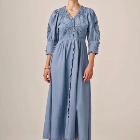 Brukt ett par ganger, ingen feil. Nydelig kjole med fine broderier. Litt romslig i str og kan brukes av både XS’ og s. Perfekt til 17.mai :D